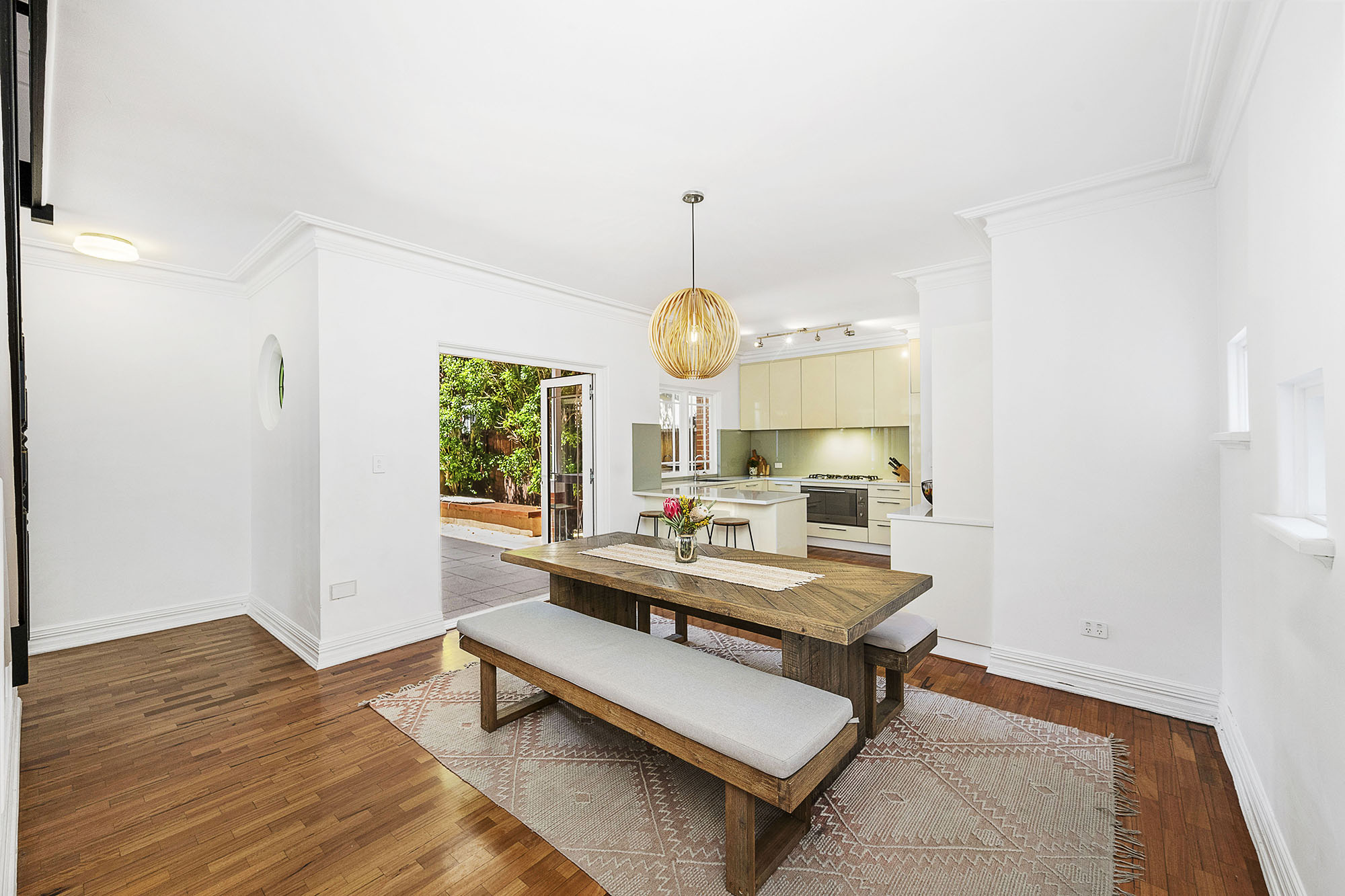 • Dining area flows seamlessly from the kitchen and opens through double doors to the rear courtyard