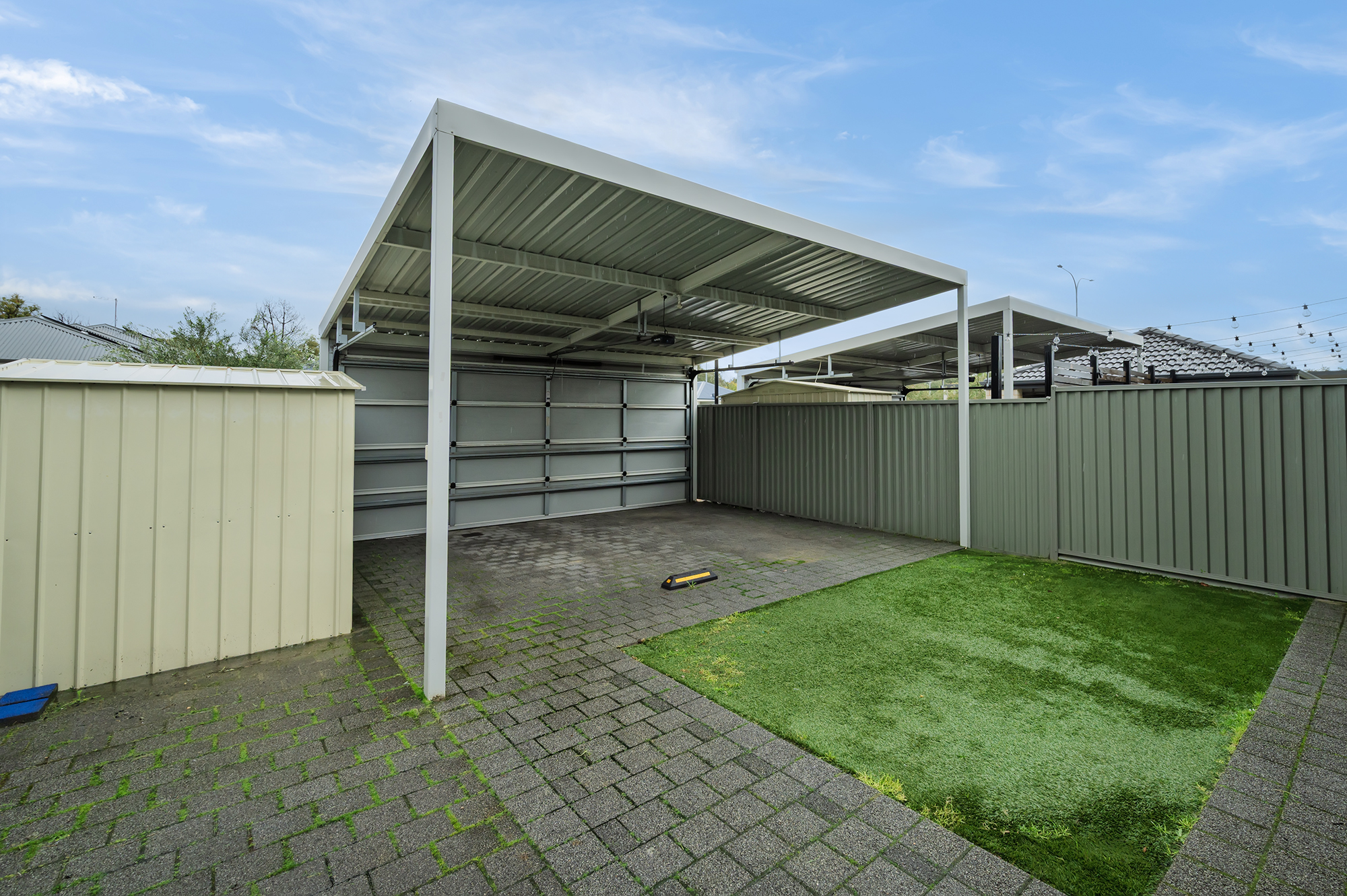 • Secure double parking with roller door access plus a handy storage shed.