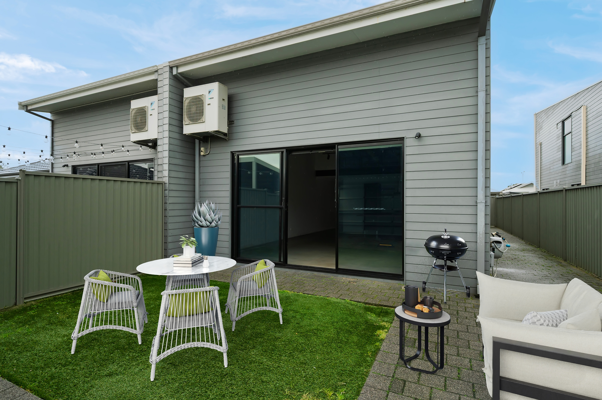 • Private courtyard with turf, perfect for entertaining or relaxing with low maintenance.